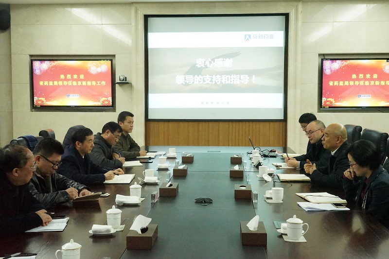 1月3日,浙江省藥品監(jiān)督管理局副局長邵元昌、省藥品認(rèn)證檢查中心主任王衛(wèi)東、省藥監(jiān)局藥品安全監(jiān)管處副處長何金華、省藥監(jiān)局藥品注冊處副處長周耘等領(lǐng)導(dǎo)一行蒞臨京新,就公司一致性評價工作進行現(xiàn)場調(diào)研,紹興市市場監(jiān)管局副局長周翔、紹興市市場監(jiān)管局安監(jiān)處處長鄧俊斌、副縣長胡玲萍等領(lǐng)導(dǎo)陪同調(diào)研。公司董事長呂鋼、總經(jīng)理王能能、研究院院長侯建熱情接待了邵局長一行。