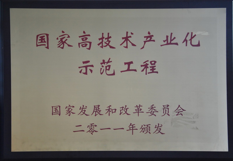 公司榮獲國家高技術產業化示范工程授牌