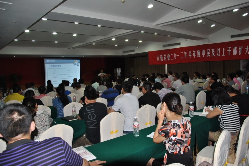 會議首先表彰了獲得2011年度縣級及以上榮譽的先進集體和個人。接著,上虞京新、廣豐京新、原料藥銷售公司、藥品銷售公司、藥品制造公司、內蒙古京新6個分子公司總經理和研發中心主任向大會作半年度工作述職,與會高管、被評價人下屬和主要業務聯系部門負責人對他們工作績效進行評價打分。