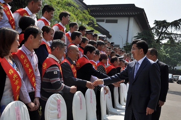 紹興市委書記陳金彪與董事長呂鋼握手